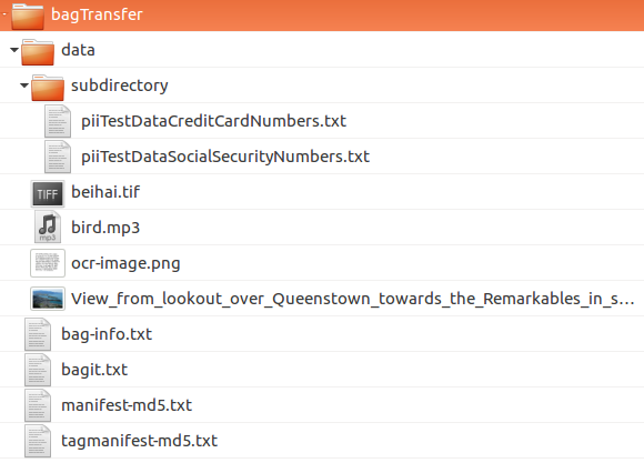 metadata files required by the BagIt specification (i.e. bag-info.txt,