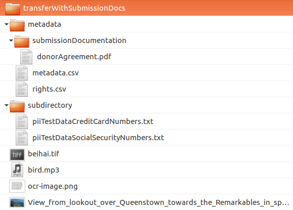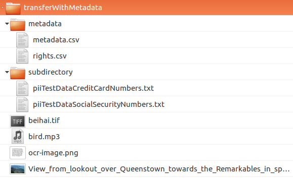 The transfer can have as many subdirectories as you wish, though this may impact processing time. The digital objects can be in any format, though what exactly Archivematica can do with a given file format varies widely. For more information on how Archivematica carries out file format preservation, see Preservation planning.