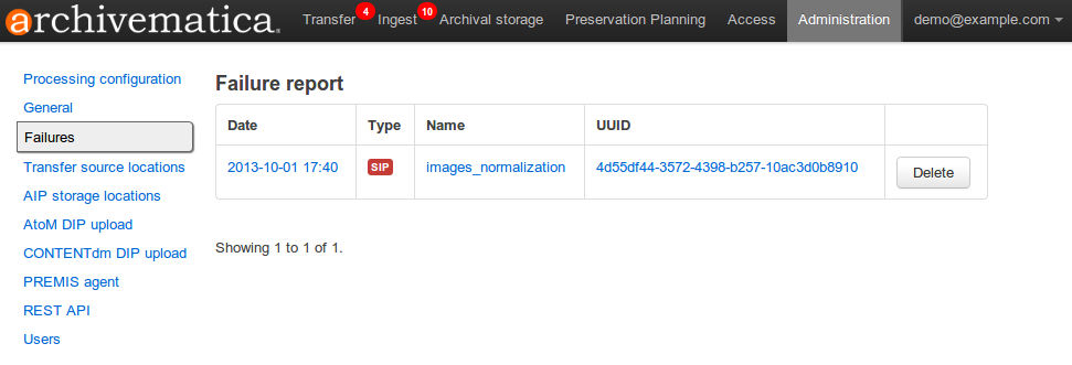 Before ingesting digital objects destined for Archivists” Toolkit, ensure that the Achivists” Toolkit DIP upload settings in the administration tab of the dashboard have been set.
