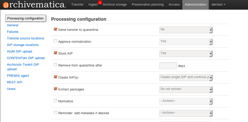 If you think you will need to use this aspect of the feature, please note that Archivematica does not offer the option to add PREMIS eventDetail by default. Instead, you must use the preconfigured choices in the processing configuration section of the Administrative tab of the dashboard to adjust your settings prior to ingest. Deselect the Reminder in the Processing Configuration settings.