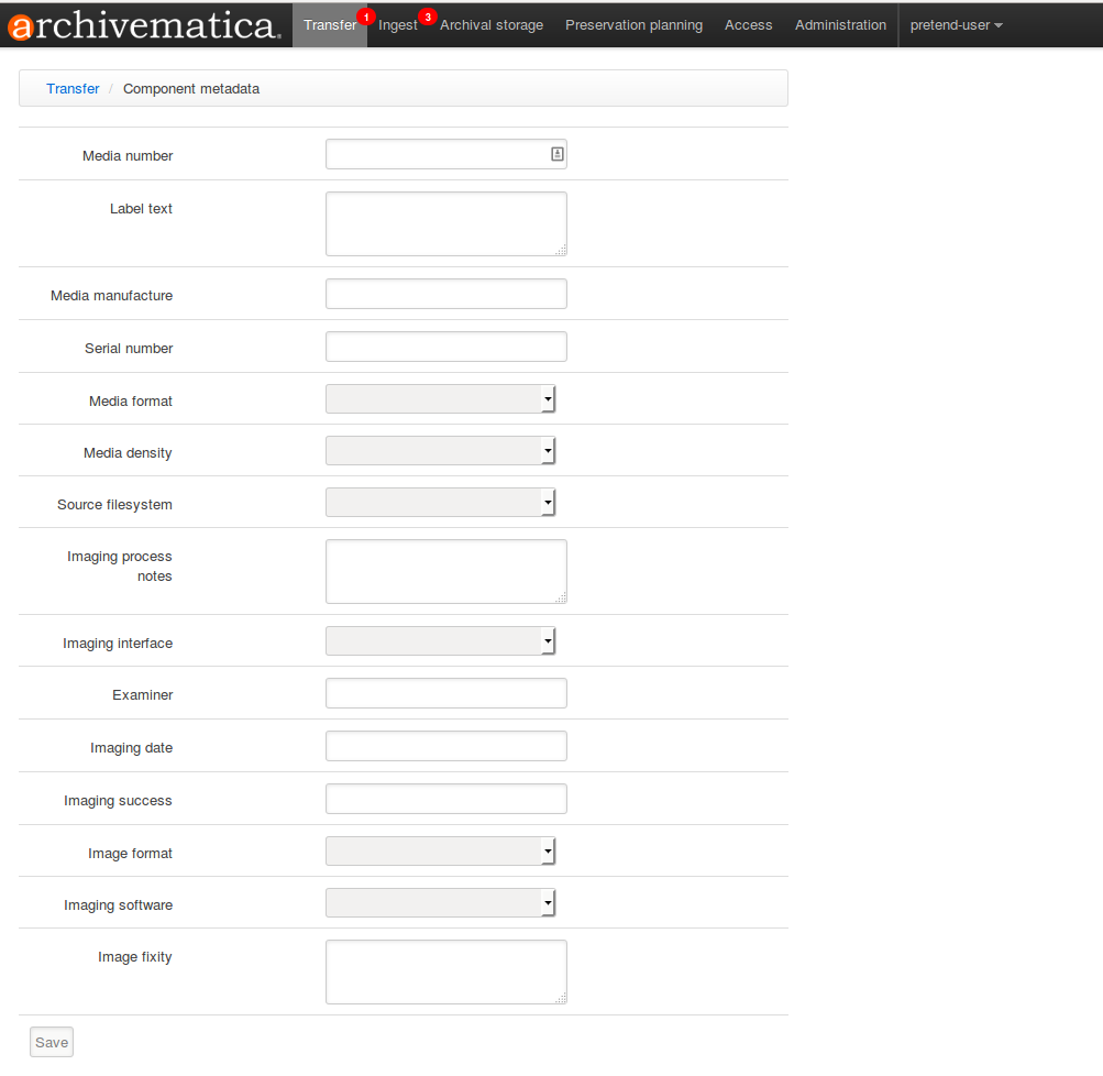 For simple image transfers, continue directly into the Ingest workflow and finish processing using the standard Archivematica processing instructions.