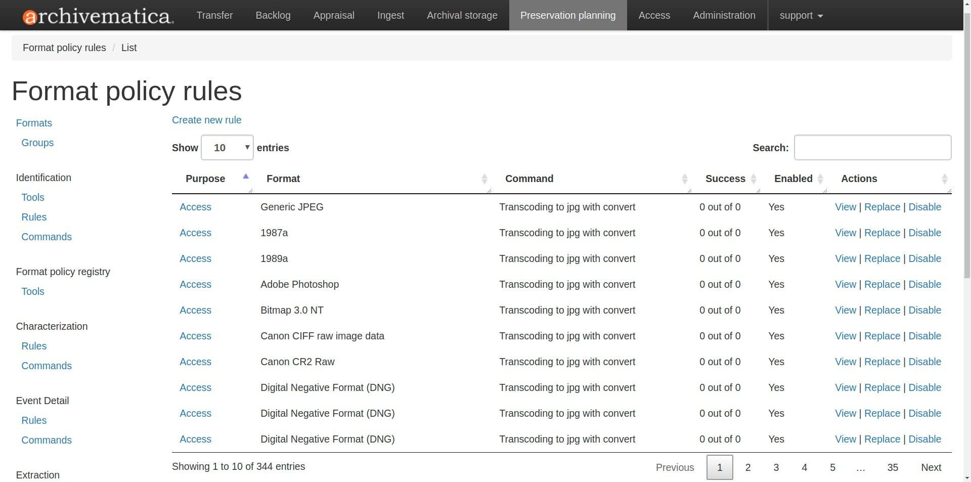 Archivematica contains default rules for many different commands. You can disable or replace these rules at any time.