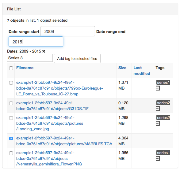 This pane also provides an option for adding tags. Files can be selected by checking the checkbox next to their filename, creating a tag name, and clicking “Add tag to selected files.” Tags can be removed from files by clicking the “-“ next to the tag name.