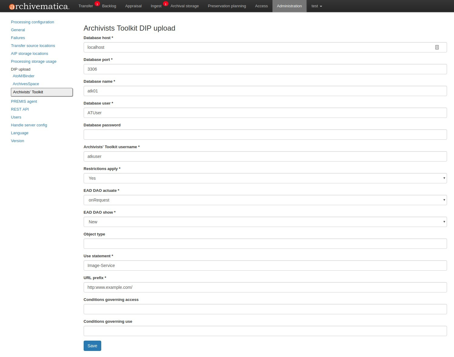 - Site URL: This is the public URL of your Archivematica dashboard. This field is optional.